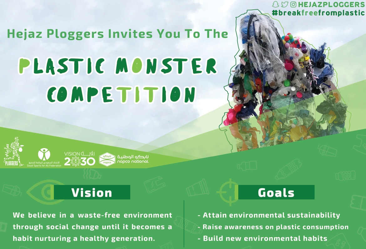 Hejaz Ploggers announces the Inter-School Plastic Monster Competition on Friday, March 13, 2020, at the Jeddah Corniche. The competition, supported by the Saudi Sports for All Federation (SFA), aims to bridge together environmental awareness and physical activity.