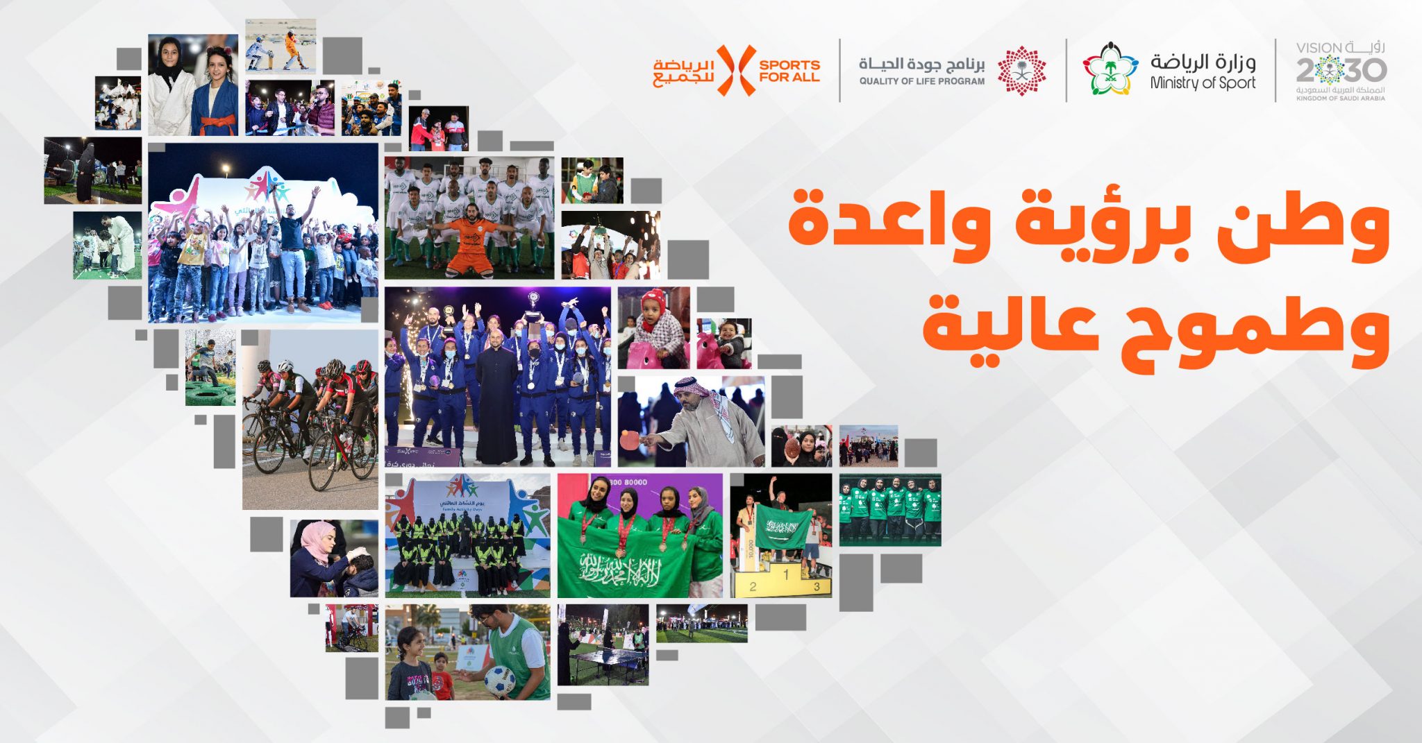 تزامنا مع احتفال المملكة العربية السعودية بذكرى مرور خمس سنوات على انطلاق مسيرة النمو والتحول والتطور في إطار رؤية 2030، جدّد الاتحاد السعودي للرياضة للجميع التزامه في تحقيق أهداف الرؤية والمساهمة في جعل المملكة منارة النشاط والصحة في العالم.