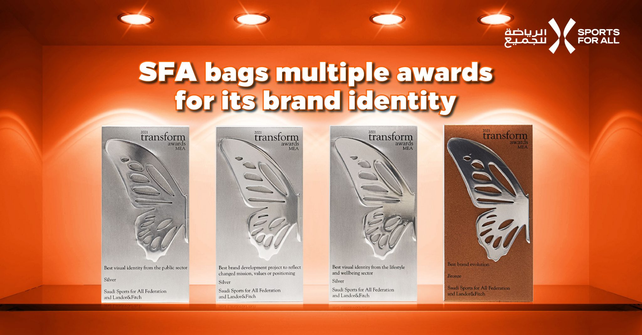 The Saudi Sports for All Federation (SFA) has bagged a haul of awards at the Transform Awards MEA 2021. The wins were testament to the Federation’s strong brand appeal and visual identity across the multiple initiatives and campaigns it runs to encourage Saudi society towards a health-first mindset. The SFA unveiled its new brand and visual language in February of last year, celebrating the wave of physical activity sweeping the Kingdom.